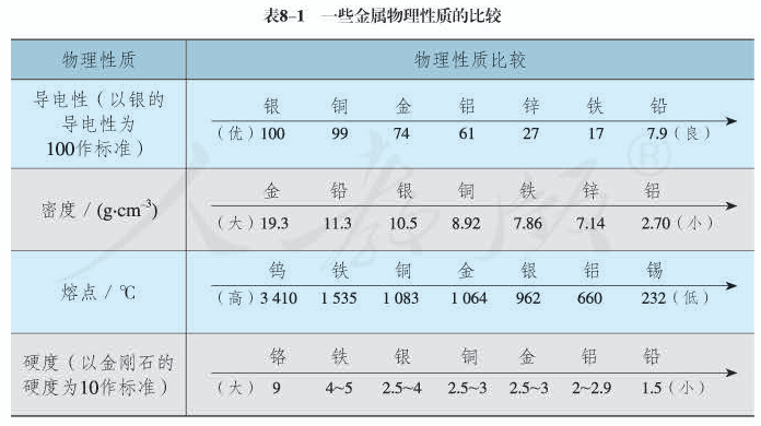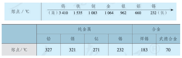 2.同主族金属的半径越大,熔、沸点越低。 同主族金属价电子数相同,半径的增大使得金属键减弱,导致熔、沸点降低,如碱金属从Li到Cs,熔点由180.5℃依次降低,Cs的熔点仅28.4℃,放在手心上就可以熔化。 以上两条规律仅对次外层是稀有气体结构的典型金属是适用的。过渡金属的熔、沸点都很高,熔点普遍超过1000℃,沸点大部分高达3000℃,其中钨的熔点是3380℃,沸点是5927℃,产生这种现象的原因是d电子参与成键,使金属键增强。铜副族因还有部分d电子较活泼,其熔、沸点仍较高,但锌副族的d电子稳定,其熔、沸点明显下降,此后进入了低熔区,低熔区金属的价电子虽不少,但活动性差,不能全部成为自由电子,金属键弱,导致熔、沸点低。 金属键是阳离子与电子之间较强的作用,简单地说,类似于静电作用,所以金属键与金属原子的自由电子数和金属原子半径有关。 影响金属键强弱的因素: (1)金属原子半径增大,键越弱。 (2)金属原子最外层电子数越多,键越强。 例如:Li、Na、K、Rb、Cs金属键依次减弱。