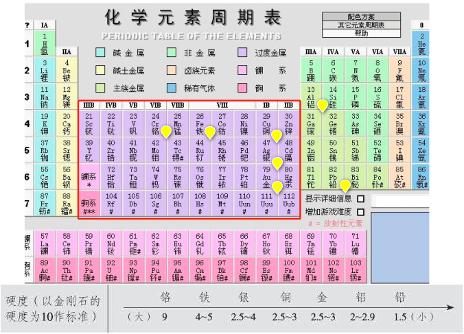 1.金属的硬度取决于金属中金属键的强弱; 2.金属原子的半径越小,金属键越强,硬度越大; 3.单位体积内的金属的价电子数越多,金属键越强,硬度越大。 一般来讲,对主族金属,从左到右,同周期,原子半径减小,价电子数增多, 所以硬度增大; 4.从上到下,同主族,原子半径增大,价电子数相同,所以硬度减小; 5.对于过渡元素,从左到右,半径减小,但是价电子数先增多后减小,因此规律可能就没有主族那么明显,但是,硬度较大的元素一般处于同周期过渡元素的中部。