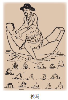 秧马底部采用平滑的木板制成,两端翘(qiào)起。 拔秧时,人们跨坐秧马,前后滑行自如,既可减轻弯腰曲背之苦,又能提高劳动效率。