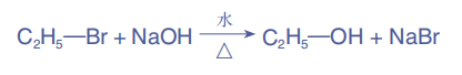 烃分子中的氢原子被不同官能团所取代后,就能生成一系列新的不同类别的有机化合物,如卤代烃、醇、酚、醛、羧酸和酯等。这些有机化合物,从结构的角度都可以看作是由烃衍生而来的,所以被称为烃的衍生物。烃的衍生物具有与烃不同的性质,这些性质主要由其分子中的官能团决定。基于官能团和化学键的特点及有机反应规律,可以推测有机化合物的化学性质,并利用其性质实现相互转化,进行有机合成。有机合成在创造新物质、提高人类生活质量和促进社会发展方面发挥着重要作用。 卤代烃 halohydrocarbon 我们对一氯甲烷、1,2-二溴乙烷、氯乙烯和溴苯这些名称已经不陌生了。它们的结构母体分别是甲烷、乙烷、乙烯和苯,可看作是这些烃分子中的氢原子被卤素原子取代后生成的化合物,我们将这类物质称为卤代烃。卤代烃的种类很多,根据分子里所含卤素原子的不同,分为氟代烃、氯代烃、溴代烃和碘代烃,可用R—X表示。根据取代卤原子的多少,可分为单卤代烃和多卤代烃。常温下,卤代烃中除个别为气体外,大多为液体或固体。卤代烃不溶于水,可溶于有机溶剂,某些卤代烃本身是很好的有机溶剂。卤代烃的密度和沸点都高于相应的烃,它们的密度一般随着烃基中碳原子数目的增加而减小,沸点随碳原子数目的增加而升高。 ![]() 我们以溴乙烷为例来学习卤代烃的主要性质。溴乙烷的分子式为C2H5Br,结构简式为CH3CH2Br,分子结构如图3-1所示。它是无色液体,沸点38.4 ℃,密度比水的大,难溶于水,可溶于多种有机溶剂。溴乙烷的核磁共振氢谱如图3-2所示。 ![]() 卤代烃的命名一般用系统命名法,与烃类的命名相似。例如: ![]() 液态的氯乙烷汽化时大量吸热,具有冷冻麻醉作用,可在身体局部产生快速镇痛效果。因此,常用氯乙烷与其他药物制成“复方氯乙烷气雾剂”,用于运动中的急性损伤,如肌肉拉伤、关节扭伤等的镇痛。 1.取代反应 【实验3-1】 取 一 支 试 管, 滴 入 10~15 滴 溴 乙 烷, 再 加 入 1 mL 5% NaOH溶液,振荡后加热,静置。待溶液分层后,用胶头滴管小心吸取少量上层水溶液,移入另一支盛有1 mL稀硝酸的试管中,然后加入2滴AgNO3溶液,观察实验现象。 可以看到,试管中有浅黄色沉淀生成,该沉淀是AgBr。溴乙烷可以在NaOH水溶液中发生取代反应,该反应也称溴乙烷的水解反应,羟基取代溴原子生成乙醇和溴化钠。 ![]() 在卤代烃分子中,卤素原子的电负性比碳原子的大,使C—X 的电子向卤素原子偏移, 进而使碳原子带部分正电荷(δ+),卤素原子带部分负电荷(δ-),这样就形成一个极性较强的共价键:Cδ+—Xδ-。因此,卤代烃在化学反应中,C—X 较易断裂,使卤素原子被其他原子或原子团所取代,生成负离子而离去。 2.消去反应 消去反应(消除反应) elimination reaction 如果将溴乙烷与强碱(如NaOH或KOH)的乙醇溶液共热,溴乙烷可以从分子中脱去HBr,生成乙烯。 ![]() 像这样,有机化合物在一定条件下,从一个分子中脱 去一个或几个小分子(如H2O、HX等),而生成含不饱和键的化合物的反应叫做消去反应(消除反应)。 【问题】 卤代烷在不同溶剂中发生反应的情况不同。如何通过实验的方法验证取代反应和消去反应的产物? 【讨论与实验】 (1)用哪种分析手段可以检验出1-溴丁烷取代反应生成物中的丁醇? (2)如图3-3所示,向圆底烧瓶中加入2.0 g NaOH和15 mL无水乙醇,搅拌。再向其中加入5 mL 1-溴丁烷和几片碎瓷片,微热。将产生的气体通入盛水的试管后,再用酸性高锰酸钾溶液进行检验。 ![]() 【比较与分析】 比较1-溴丁烷的取代反应和消去反应,完成下表,分析反应条件对化学反应的影响。 ![]() 【讨论】 (1)如图3-3所示,为什么要在气体通入酸性高锰酸钾溶液前先通入盛水的试管?除了酸性高锰酸钾溶液,还可以用什么方法检验生成物?此时还有必要将气体先通入水中吗? (2)预测2-溴丁烷发生消去反应的可能产物。 卤代烯烃的某些化学性质与烯烃的相似,能发生加成反应和加成聚合反应。例如,氯乙烯能加成聚合生成聚氯乙烯,四氟乙烯加成聚合生成聚四氟乙烯。聚氯乙烯和聚四氟乙烯都是用途广泛的高分子材料。 ![]() ![]() 卤代烃在日常生活中有着广泛的应用。例如,在消防上使用的卤代烃灭火剂,可应用于资料室、变电站、博物馆等场所。由于卤代烃是良好的有机溶剂,在清洗业中常用作清洗剂,应用于衣物干洗和机械零件的洗涤。有些多卤代烃,如氟利昂(几种氟氯代甲烷和氟氯代乙烷的总称),它们化学性质稳定,无毒,具有不燃烧、易挥发、易液化等特性,曾被广泛用作制冷剂和溶剂。然而,20 世纪 80 年代以来,大量的科学研究表明使用氟利昂对臭氧层有破坏作用,使臭氧层产生“臭氧空洞”,危及地球上的生物。 大气中的臭氧层可滤除大量的紫外线,保护地球上的生物,其主要反应为: ![]() 研究表明,氟利昂可在强烈的紫外线作用下分解,产生的氯原子自由基会对臭氧层产生长久的破坏作用。以CCl3F为例,它破坏臭氧层的反应过程可表示为: ![]() 为了保护臭氧层,国际社会于 1987 年制定了《关于消耗臭氧层物质的蒙特利尔议定书》,要求签约国限制生产和消费某些卤代烃,并自1989年1月1日起生效。我国于1991年6月加入该议定书。1995年,诺贝尔化学奖授予致力于研究臭氧层被破坏问题的三位环境化学家。 1. 关于卤代烃的下列说法不正确的是( )。 A. 卤代烃不属于烃 B. 卤代烃不溶于水,易溶于有机
